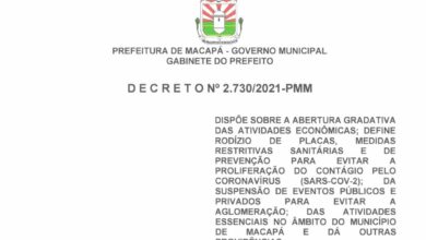 A Prefeitura de Macapá divulgou na noite deste sábado, 10, o Decreto Municipal nº 2.730/2021 para o período de 12…