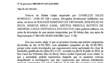 A defesa dos policiais militares Wagner Marinho da Trindade, Kim Félix da Silva, Marcos Gama, Aretha Amorim e Liege Espíndola…