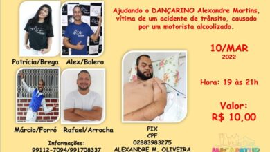Na próxima quinta-feira, 10, acontece um aulão solidário de dança em prol do dançarino Alexandre Martins, vítima de acidente de…