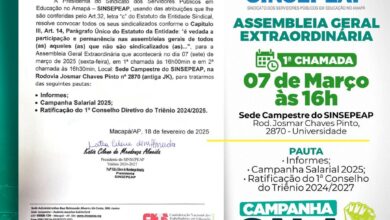 O Sindicato dos Servidores Públicos em Educação no Estado do Amapá (Sinsepeap) convida todos os professores e profissionais da educação…