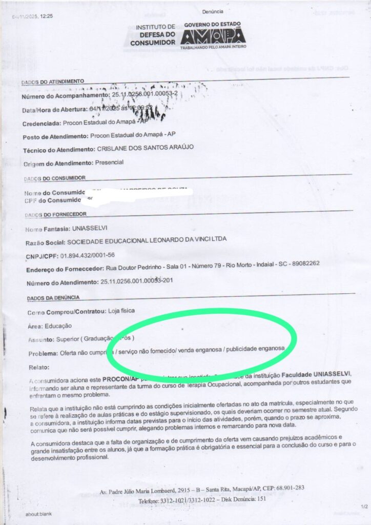 Acadêmicos do curso de Terapia Ocupacional da faculdade Uniasselvi em Macapá denunciam irregularidades e acionam o Procon