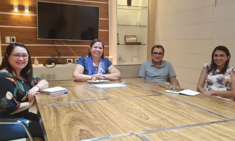 Estiveram na reunião, o coordenador do FEPETI-AP, auditor fiscal Marcos Marinho, Ilana Patrícia, assistente social do CEREST Estadual/AP, e Fabiola Ribeiro, presidente do Instituto INOVA.