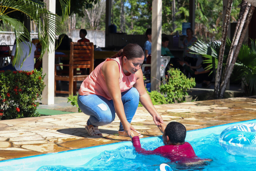 Nesta sexta-feira (23), os estudantes do Atendimento Educacional Especializado (AEE) da Escola Municipal Aracy Nascimento fizeram uma excursão em um haras de Macapá. Com direito a passeio a cavalo e banho de piscina, a ação promoveu a inclusão e socialização de mais de 20 estudantes com deficiência.