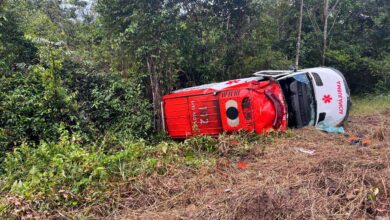 Ambulância que trazia pacientes de Calçoene capota ao aquaplanar