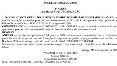 O Comando do Corpo de Bombeiros Militar do Amapá, nesta segunda-feira, 25, a noite, por boletim, acatou recomendação do Ministério…