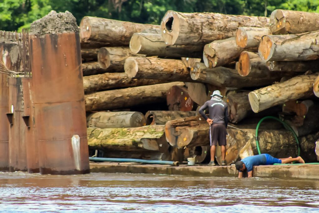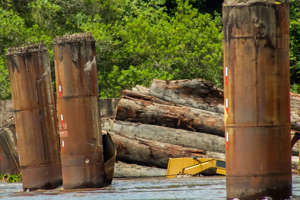 Balsa com madeira vira após bater em pilares de ponte inacabada sobre o rio Jari; Não há feridos