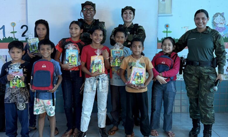 Já na quinta-feira (9), foi a vez dos alunos da Escola Municipal Maria Brígida Brito Maciel, Tia Bijoca, na Comunidade de Bonito do Aporema, participarem de uma manhã lúdica com brincadeiras e distribuição de brindes. A ação fez parte de um ciclo de visitas planejadas pelo Batalhão Ambiental, com o objetivo de reforçar, junto às crianças, a importância da preservação do meio ambiente e o papel de cada um na construção de um futuro mais sustentável.