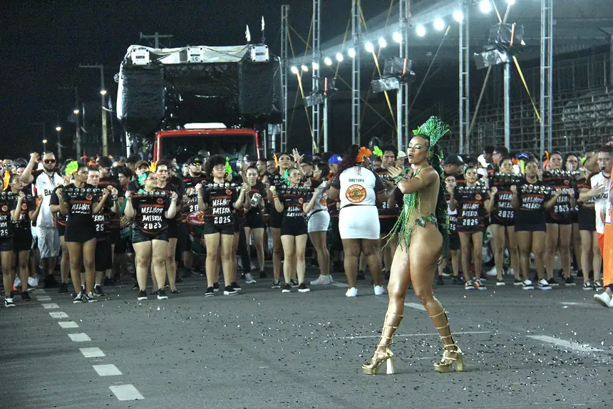 A bateria “Orquestra de Bambas”, da Piratas Estilizados encantou e empolgou a torcida alaranjada, com o enredo “Da lenda de Iaça, ao sabor açaí que conquistou o mundo”. O tema homenageia o açaí, um fruto símbolo da cultura e gastronomia do Amapá.