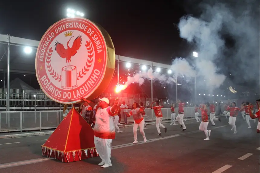 A tradicional Universidade do Samba Boêmios do Laguinho foi a segunda agremiação a se apresentar na avenida Ivaldo Veras, e trouxe para a pista um “pavilhão robusto” com integrantes vestidos nas cores predominantes vermelho e branco, emocionando a torcida, que cantou o samba de enredo. o Enredo foi elogio da Loucura.