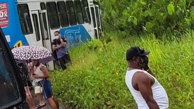 Ônibus da empresa Sião Thur perde o controle e cai em canteiro da rodovia Duca Serra