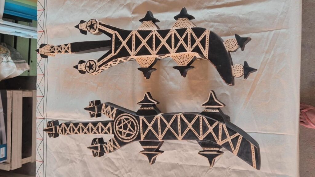 “Os artefatos expostos incluem esculturas de kayeb, miniaturas de talheres e outros artefatos tradicionais, além de adornos como colares, pulseiras e cocares.” conclui Labontê.