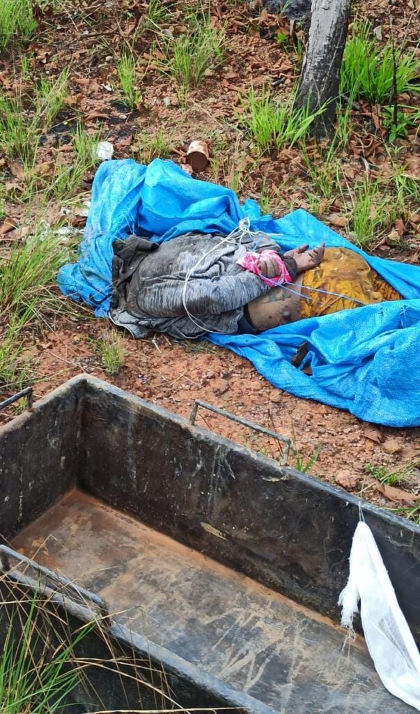 De acordo com informações, o cadáver que já estava em estado de putrefação, estava com as mãos amarradas nas costas e enrolado em um encerado de cor azul, envolto a cordas.