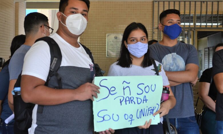 Candidatos aprovados no processo seletivo da Unifap, por cotas, protestam nesta quarta-feira, 6, alegando injustiça nos resultados da avaliação presencial de cotistas onde 101 alunos foram não-admitidos. Os resultados foram divulgados nesta terça, 5, e a análise foi feita por uma comissão de heteroidentificação independente da universidade, que avaliava fenótipos de negritude como cabelo, pele e traços visuais.
