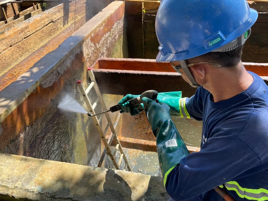 As equipes da CSA realizaram manutenção na etapa de decantação do sistema, que atua para passagem da água por grandes tanques para separar os flocos de sujeira. Além disso, foi realizada limpeza da área. Este trabalho faz parte do plano de investimentos da empresa.