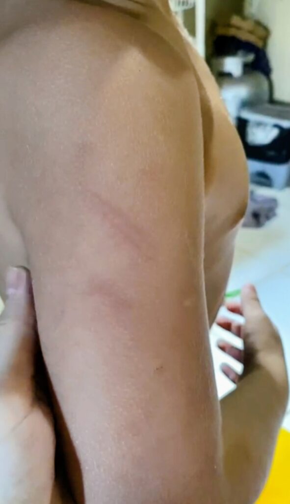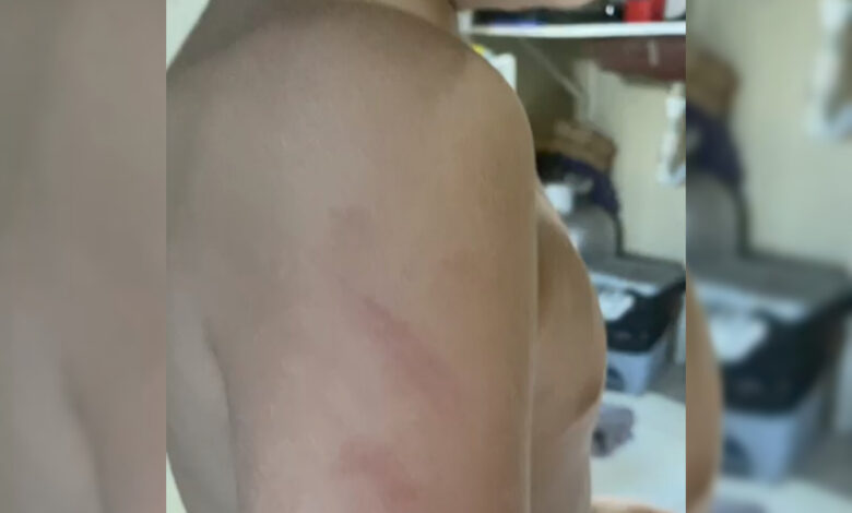 De acordo com o relato da mãe, a criança chegou em casa com o braço arranhado e bastante abalada emocionalmente. “Ele chegou tremendo, assustado, e disse que foi a professora que arranhou o braço dele”, afirmou.