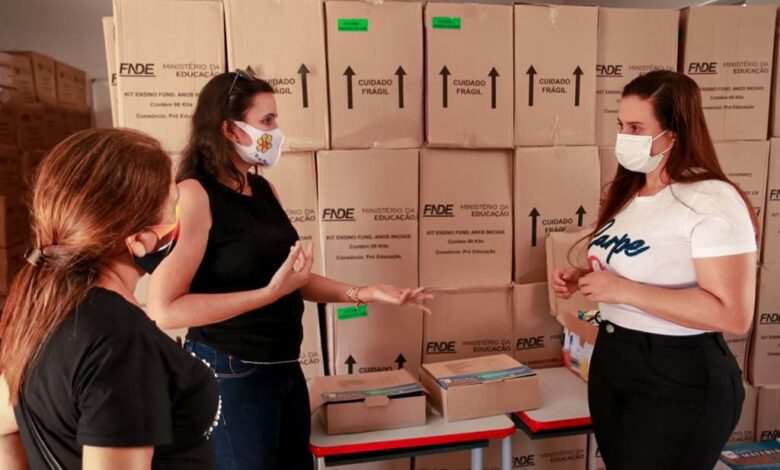 A deputada estadual Alliny Serrão (DEM), esta semana, encaminhou à Secretaria Municipal de Educação de Laranjal do Jari, kits escolares para atender os alunos das creches, educação infantil, fundamental I e II e EJA.