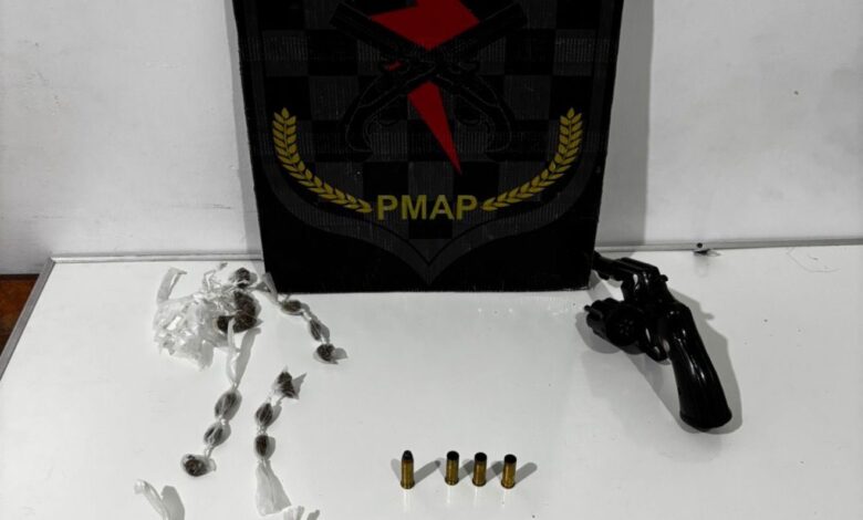 Na revista realizada, os policiais encontraram porções de maconha e um revólver calibre 38. Conforme a polícia, o homem cumpria pena em regime aberto domiciliar, respondia por homicídio qualificado e possuía diversos boletins de ocorrência por descumprimento das medidas cautelares impostas pelo Poder Judiciário.