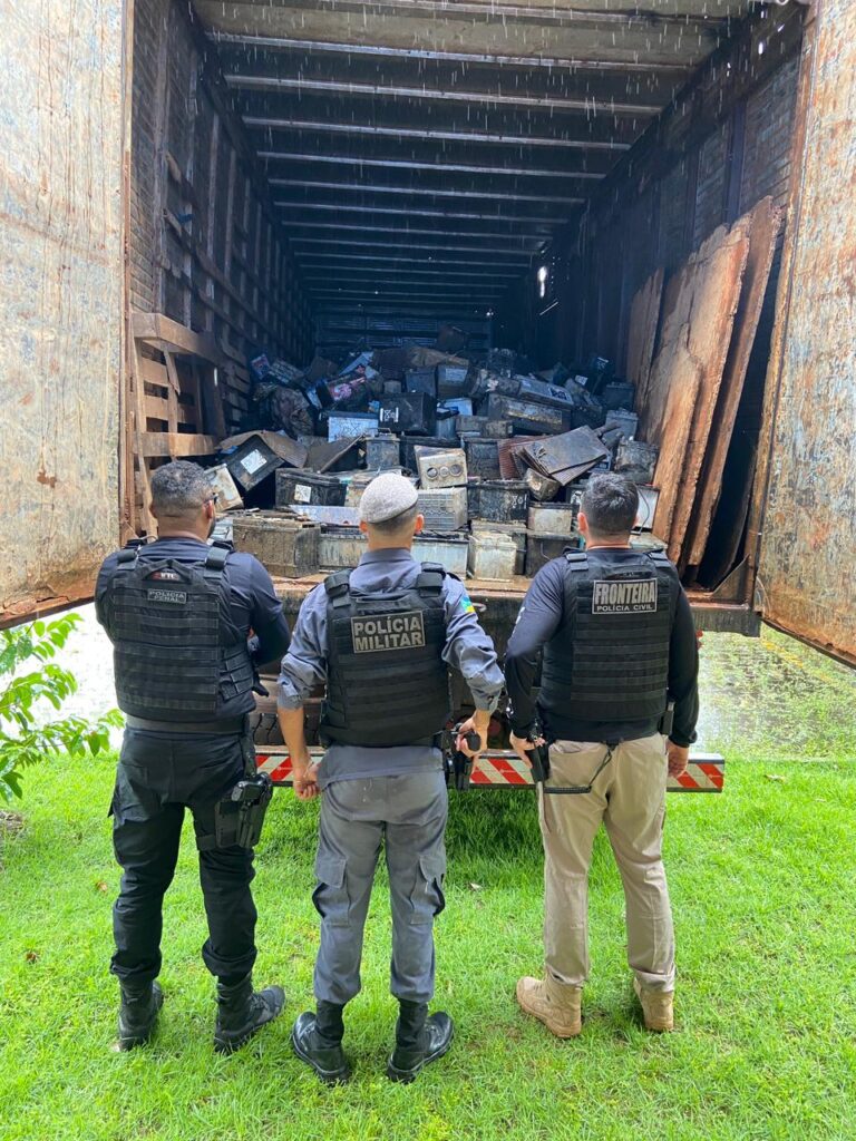 Ainda durante a operação foram apreendidas mais de 17 toneladas de baterias contrabandeadas e um caminhão. Lixo com alto risco de danos ambientais.