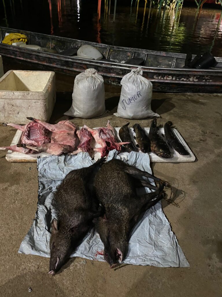 Também foram apreendidos animais silvestres como cotia, porco do mato e pacas.