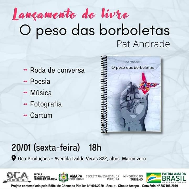 Em meio ao cotidiano conturbado da cidade, a escritora Pat Andrade abre uma lacuna para a leveza e a poesia, no evento de lançamento do seu mais novo livro de poemas: O peso das borboletas.