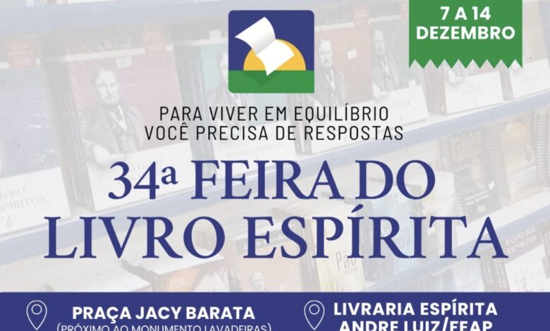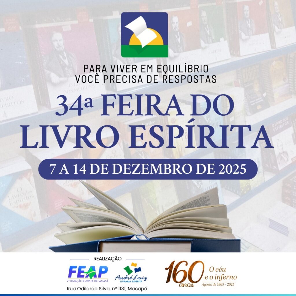 Centenas de obras estão à venda na 34ª Feira do Livro Espírita que ocorre no período de 07 a 14 de dezembro na Praça Jacy Barata, Centro de Macapá, e na Livraria Espírita André Luiz, na sede da FEAP. O evento é uma realização da Federação Espírita do Amapá – FEAP.