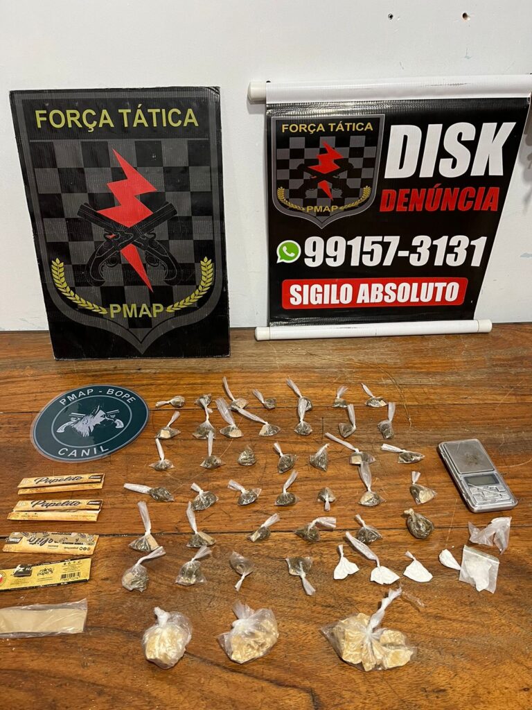 Na sexta-feira, 15, por volta de 11h30, durante operação nas áreas de ponte do bairro Congós, um homem de 22 anos foi preso com substâncias supostamente entorpecente por uma equipe do Batalhão de Força Tática. A ação cobriu com apoio do Canil da PMAP que encontrou mais entorpecentes na residência do acusado.