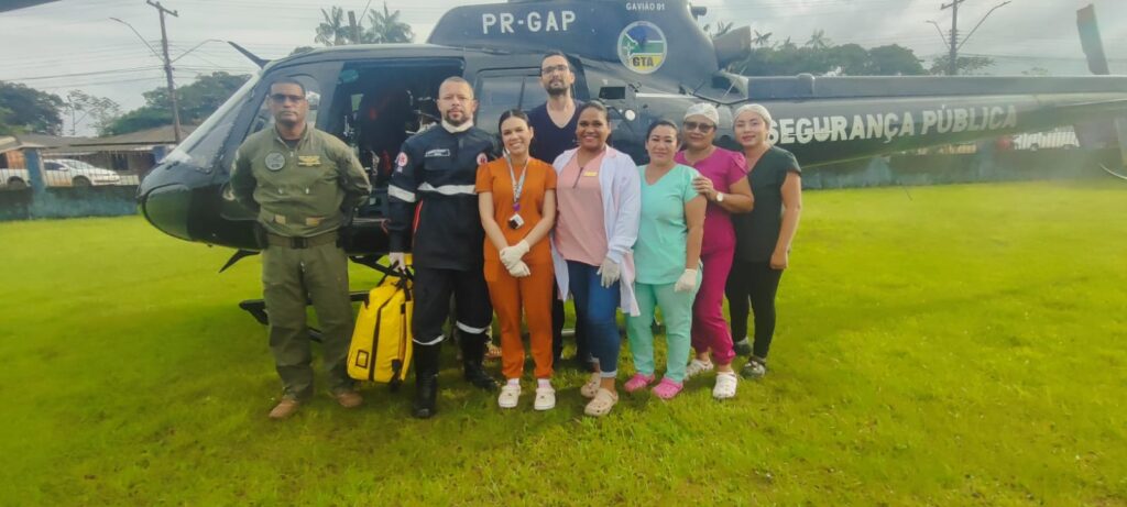 A equipe do GTA, a bordo da aeronave Gavião 01, decolou de Macapá acompanhada por profissionais do Serviço de Atendimento Móvel de Urgência (SAMU), incluindo médico e enfermeiro, preparados para atendimento de alta complexidade.