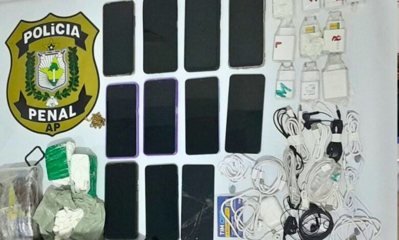 Durante a ação, foram apreendidos 10 aparelhos celulares, 10 fontes de carregadores, cabos e fones de ouvido, substâncias supostamente entorpecentes, uma balança de precisão, chips de telefonia e um cordão utilizado para o arremesso dos materiais.
