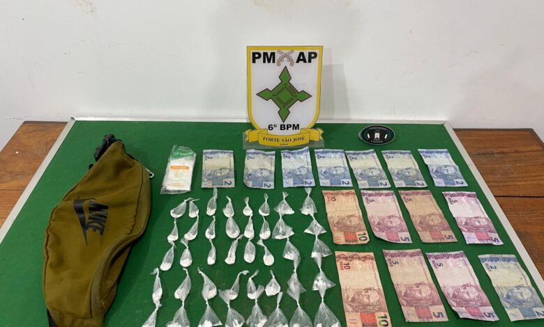 Com base nas informações, a equipe se deslocou até o ponto indicado e realizou a abordagem do suspeito. Durante a revista pessoal, os policiais encontraram 40 porções de uma substância com características semelhantes à cocaína, além de R$ 61 em dinheiro.