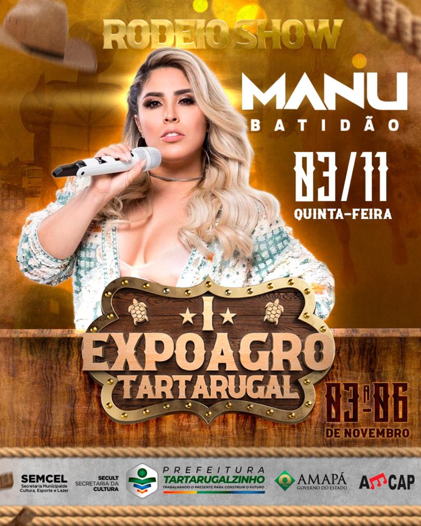 A programação inicia na quinta-feira, 03, com show de Manu Batidão, na sexta-feira, 04, tem apresentação gospel com Midian Lima, no sábado, 05 será a vez da Companhia do Calypso agitar Tartarugalzinho e no domingo fechando o rodeio terá Zé Vaqueiro.