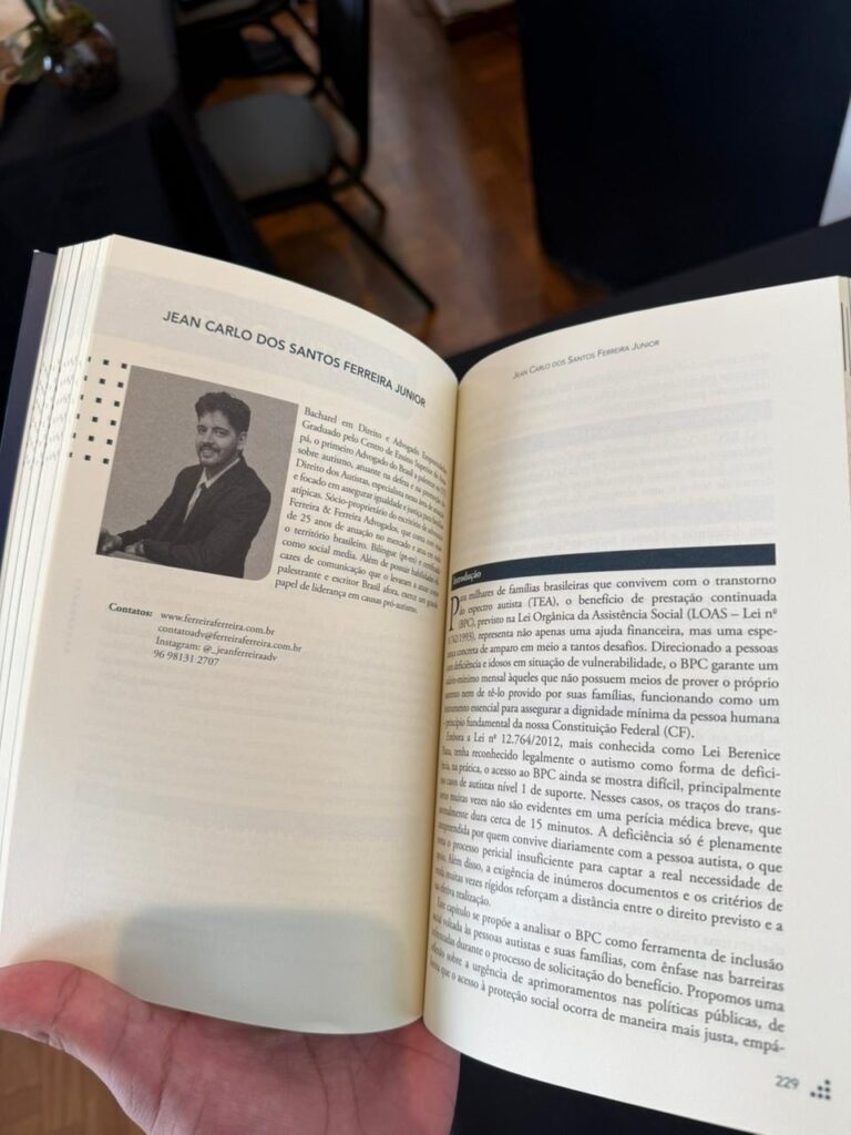 Jean Ferreira destacou o impacto pessoal e profissional de sua caminhada. “Vir de uma família atípica mudou completamente a forma como eu enxergo o Direito. Quando você vive na pele as dificuldades de acesso, a falta de informação e o descaso com autistas, tudo ganha outro peso. Cada conquista minha representa também as famílias que nunca tiveram voz. Cresci entendendo que lutar pelos vulneráveis não é escolha, é missão. E quando a obra que sou coautor se torna best seller, quando chego ao segundo volume desse projeto tão grandioso, eu só consigo pensar em quantas vidas ainda podem ser impactadas. Eu faço isso por mim, pela minha família, e por cada pessoa atípica que sonha com um Brasil mais justo para autistas.”