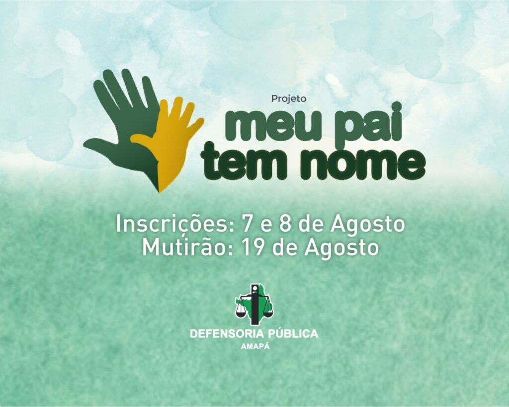 Com uma programação voltada para o reconhecimento de paternidade, a Defensoria Pública do Amapá (DPE-AP) realizará, no dia 19 de agosto, a segunda edição do projeto nacional “Meu Pai Tem Nome”, iniciativa do Conselho Nacional das Defensoras e Defensores Públicos-Gerais (Condege). Essa é a segunda edição da campanha que acontece em todos os 26 estados e Distrito Federal com a parceria das Defensorias estaduais.