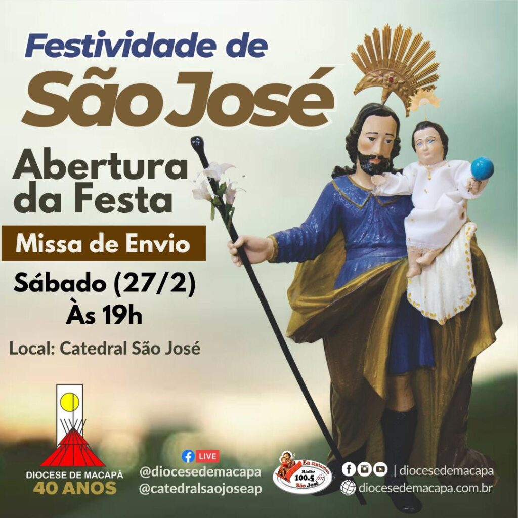 No próximo sábado, 27, acontece a abertura da programação da Festividade de São José 2021. A missa de envio e de bênção das Imagens e Oratórios será na Catedral de Macapá, às 19h, e vai reunir paroquianos, fiéis e famílias devotas, além de representantes de instituições públicas e privadas para dá início aos festejos deste ano em honra ao santo padroeiro.