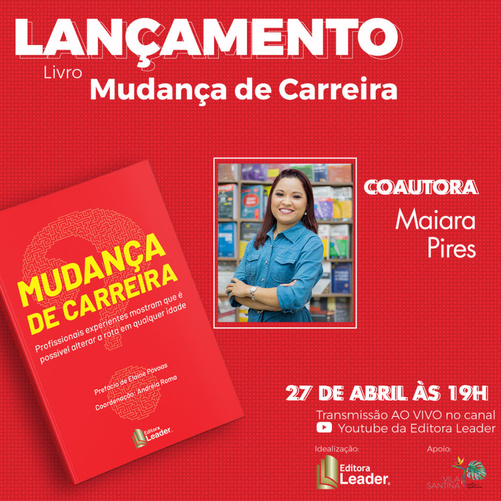 ServiçoLançamento On-line do livro Mudança de CarreiraData: 27 de abrilHora: 19hLocal: Canal da Editora Leader no Youtube (https://www.youtube.com/c/EditoraLeader)