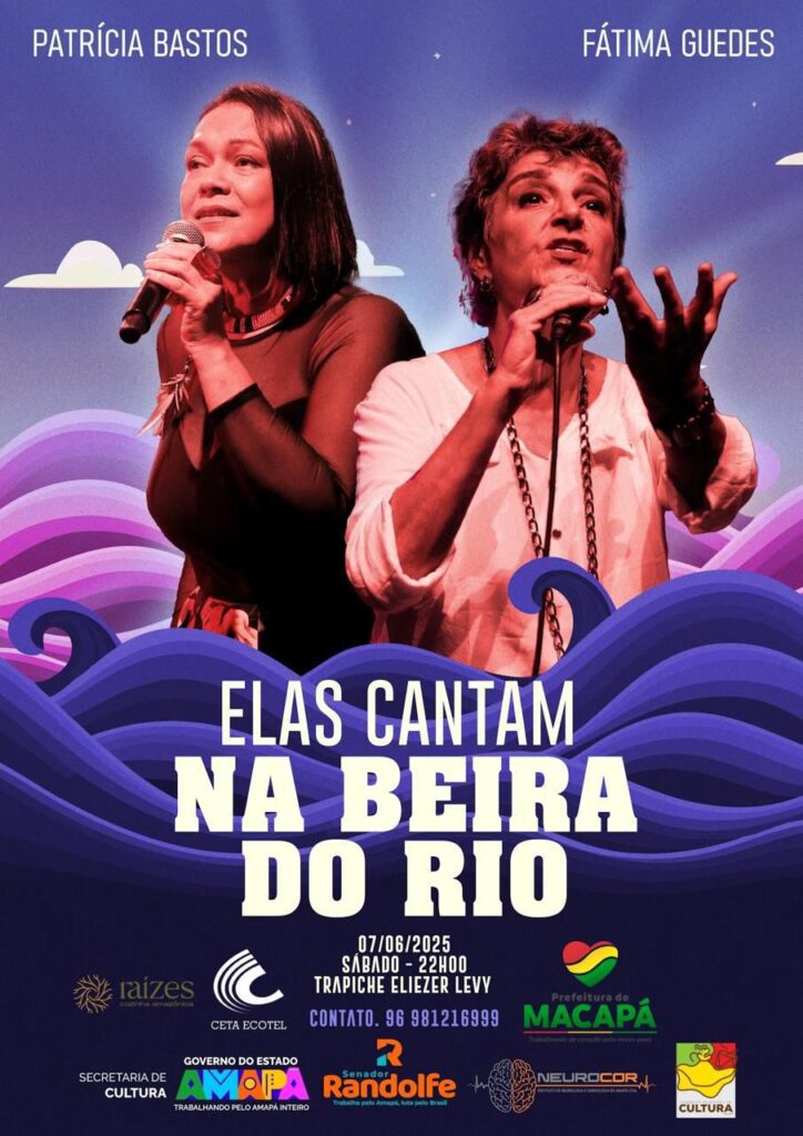 O rio Amazonas é o cenário do encontro musical entre Patrícia Bastos e Fátima Guedes, artistas principais do show “Elas Cantam na Beira do Rio”, uma noite para ser apreciada contemplando as belezas naturais e com um bom serviço gastronômico e de bar. Patrícia e Fátima têm um rico repertório que em suas vozes encantam e emocionam, e nesta noite, seus talentos definem em voz, sons e ritmos, a poesia e beleza da mulher, e das riquezas brasileiras. O show será neste sábado, 7 de junho, a partir de 22h, no Trapiche Eliezer Levy.