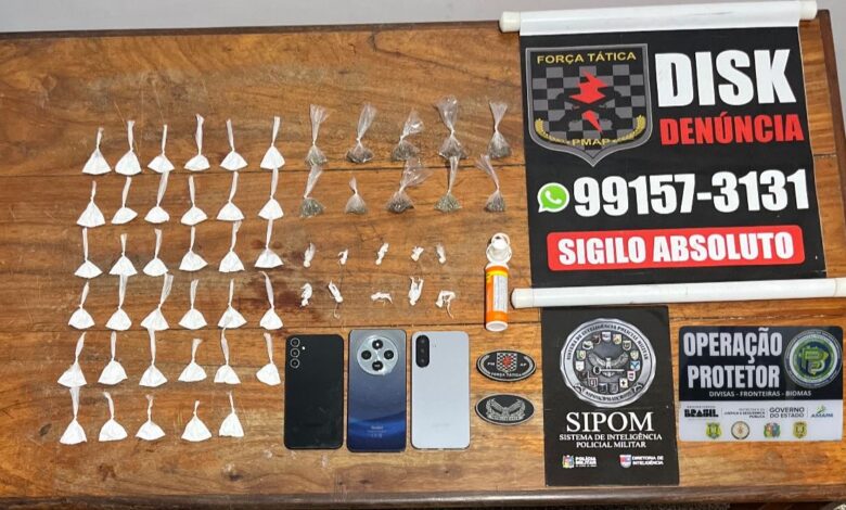 “Os policiais localizaram as duas mulheres que estavam com porções de drogas prontas para comercialização. Elas foram presas e encaminhadas ao Ciosp do Pacoval”, informou o capitão da Força Tática, Alanjoce Lopes.