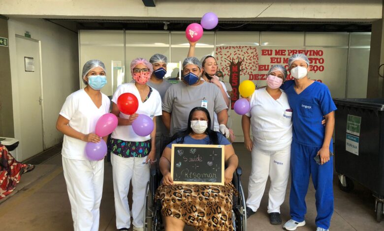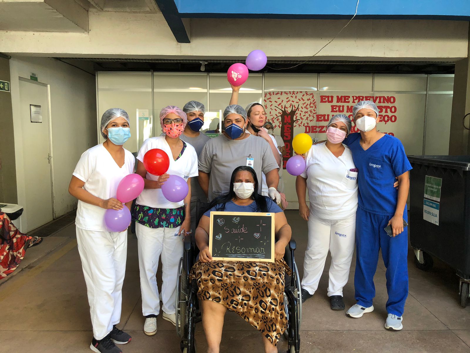 Para a despedida da professora e pastora Rizomar Passos dos Reis a equipe promoveu o que chamam de “alta humanizada”, que é um bota-fora com alegria e energia positiva festejando o paciente ter superado seu momento de dificuldade. Digimar, filha da pastora Rizomar agradeceu com uma benção a atenção dispensada pela equipe multiprofissional. “Vocês cuidaram da minha mãe super bem.