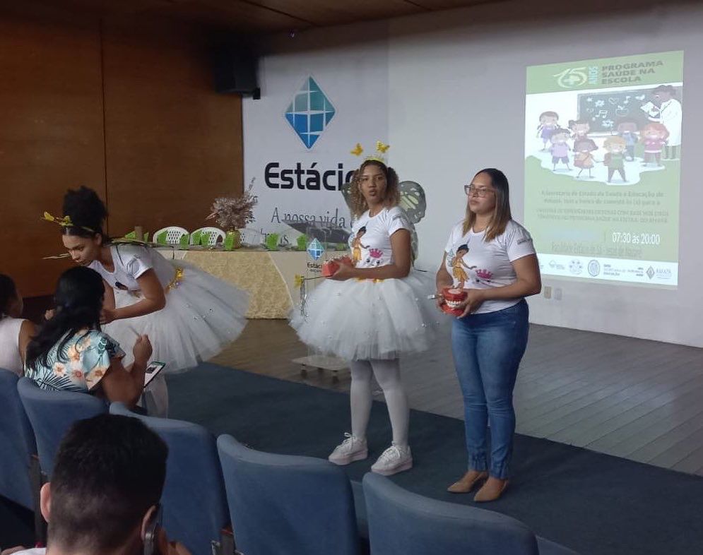 A apresentação foi baseada nas ações de saúde bucal desenvolvidas no município, com ênfase em técnicas de escovação. De forma lúdica, as “fadinhas do dente” demonstraram como ensinar as crianças a maneira correta de escovação. Completaram a equipe de saúde de Pedra Branca, as dentistas Rosiene Oliveira, Kelly Laurena e Gheysa Abreu (coordenadora de Odontologia) e a técnica em saúde bucal, Andreza Pereira.