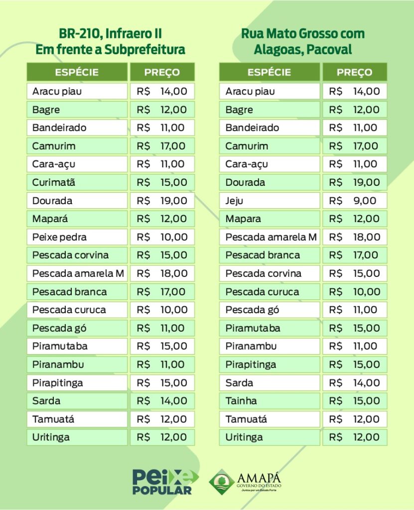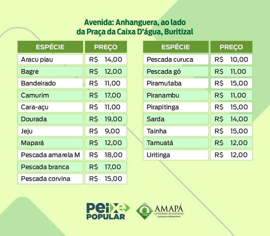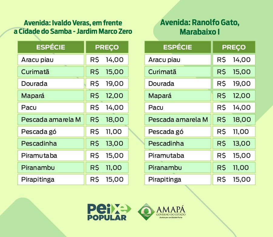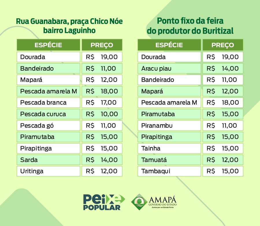 O Governo do Amapá vai ofertar mais de 50 toneladas de pescado durante o feriado da Semana Santa. A ação faz parte do programa Peixe Popular, organizado pelo Instituto de Extensão, Assistência e Desenvolvimento Rural do Amapá (Rurap) e acontecerá de 12 à 15 de abril, com a participação de empreendedores que comercializarão em diversos pontos da capital amapaense.