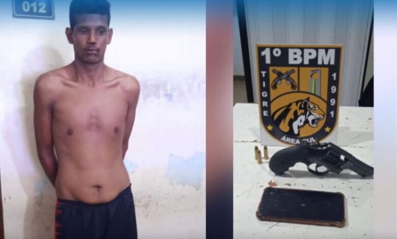 Ao perceber a presença da polícia, Paulo Henrique correu com as mãos na cintura, para tentar fugir da prisão, mas foi alcançado e acabou capturado. Com eles os militares encontraram um revólver calibre 38 com a numeração suprimida. Ele foi apresentado no Ciosp do Pacoval e na delegacia foi reconhecido pela vítima.