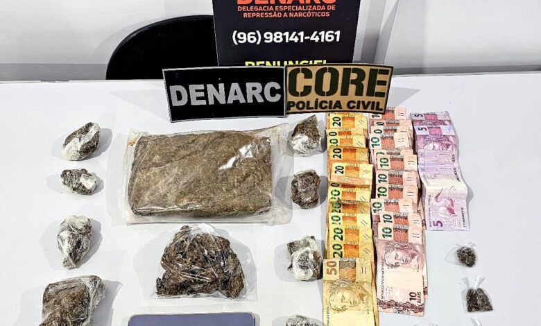 “Durante as diligências, foi possível identificar diversos usuários na residência do acusado. Porções de maconha, dinheiro e uma balança de precisão foram apreendidas. O suspeito resistiu ativamente à abordagem, mas foi contido e preso em flagrante. Dois usuários de drogas também foram conduzidos à DENARC, onde confirmaram que estavam no local para comprar entorpecentes”, informou o delegado.