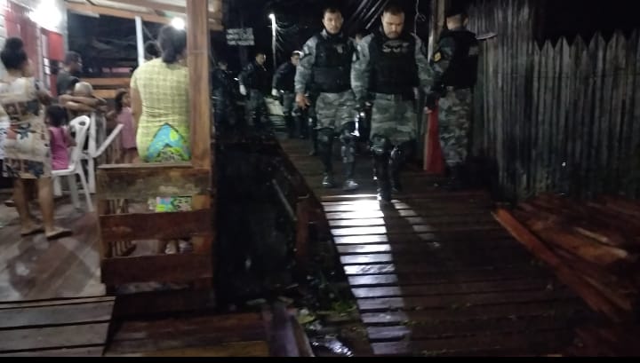 A equipe foi até a área de palafitas e o infrator, ao avistar a equipe policial, empreendeu fuga, adentrou em uma residência e tentou fugir pela área alagada. Os policiais foram atrás dele e foram recebidos a tiros.