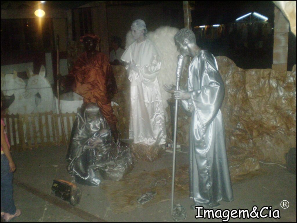 “A ideia é fazer um presépio parecido com os que existem em miniatura, só que com estátuas vivas, é uma apresentação onde temos performance do nascimento do cristo, encontro do anjo com os reis magos, com os pastores e o ápice é a formação do presépio”, explica a diretora.