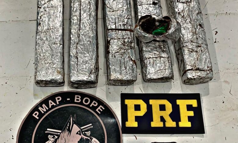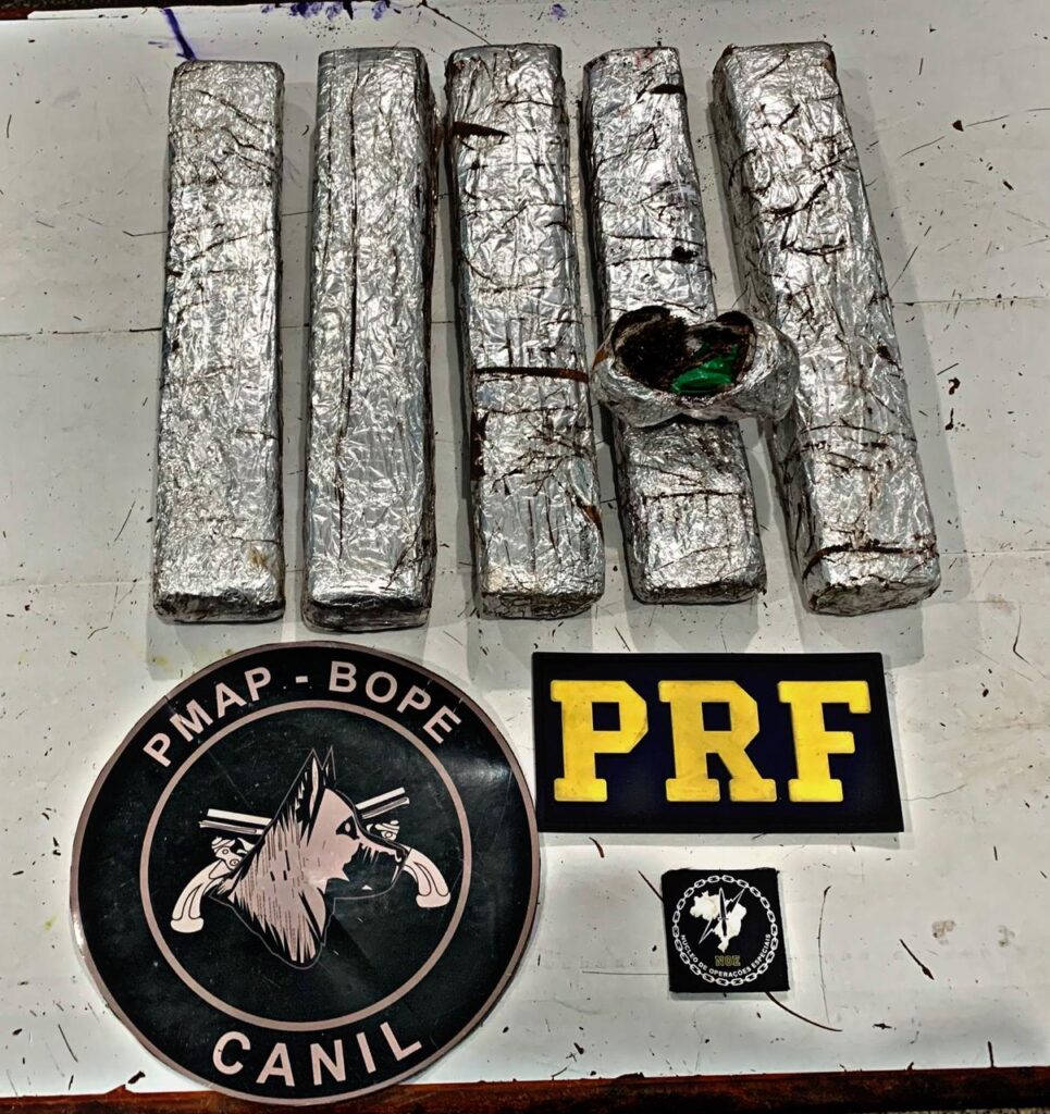 Foi durante uma ação conjunta entre o Canil do Batalhão de Operações Especiais (Bope) e a Polícia Rodoviária Federal do Amapá (PRF), que os policiais apreenderam cinco tabletes de substâncias entorpecentes, do tipo maconha.