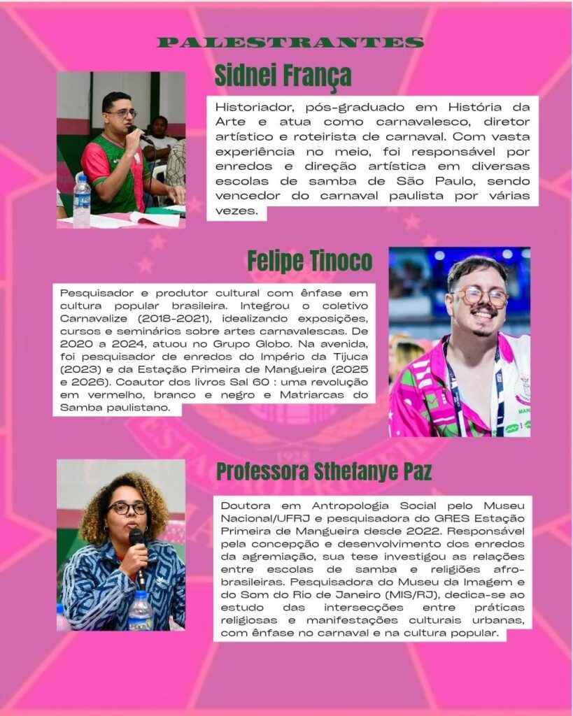 A conversa contará com a presença de nomes fundamentais para a criação do carnaval mangueirense: