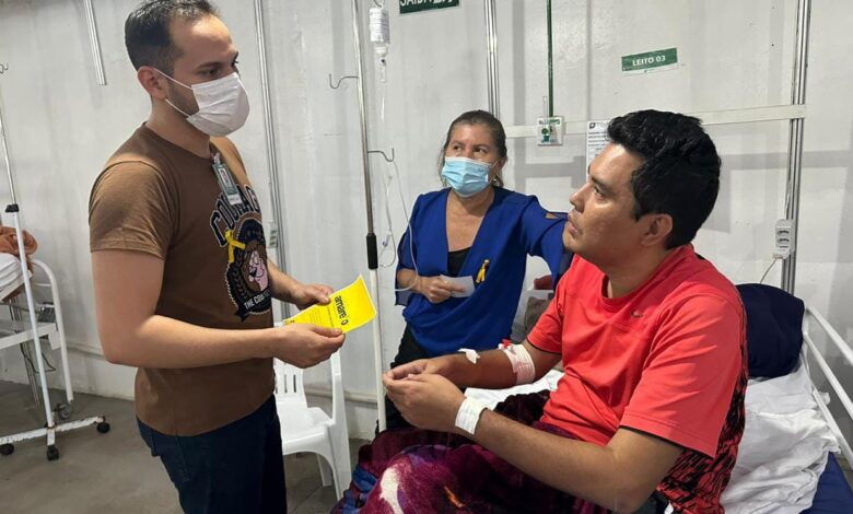 Para promover um momento de informação e debate sobre o tema, a Comissão de Humanização e Educação em Saúde realizou uma blitz educativa nas unidades, distribuindo fôlder com os principais destaques sobre o assunto e o tradicional lacinho de cor amarela, um dos símbolos da campanha.