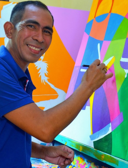Em suas criações, o artista se utiliza do estilo “Pop Art”, com cores vibrantes e a linguagem figurativa, que ele descobriu afinidade ao longo de seus anos de estudos acadêmicos e experimentações artísticas. “Utilizo cores, traços, narrativas e temáticas, que não só nos servem ao deslumbre do olhar como ao orgulho de sermos um povo mestiço, rico em patrimônio material e imaterial, em pluralidade e tantos outros aspectos que fazem de nós, brasileiros, singulares e grandiosos”, destaca.